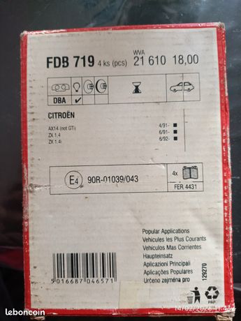 jeff4,2(8)Plaquettes de freins Peugeot35 €Prix: 35 €.Livraison possibleSaint-Germain-les-Belles 87380Située à Saint-Germain-les-Belles 87380.