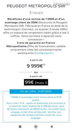 Scooter peugeot metropolis 3 roue